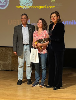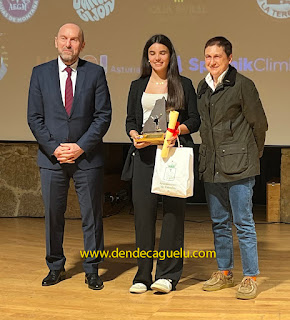 Finalmente el de Joven Promesa “José Ángel Lucas”, fue para la joven cabraliega Nuria Prieto Cotera. Quien a sus 16 años ha desplegado una brillante actividad desde que comenzó su andadura, con tan solo 12 años, en las carreras de Montaña, incorporándose un tiempo después a las exigentes competiciones de Esquí de Montaña. Son ya los diferentes lugares de la geografía española los que la han visto pasar a gran velocidad, consiguiendo varios podios y excelentes resultados. A ello suma su faceta de escaladora esporádica, ascendiendo a la cima del Naranjo con 13 años. Además de su fulgurante presente, se augura un prometedor futuro a Nuria, que entrena incansablemente para superarse cada día, siendo un ejemplo para jóvenes y mayores.