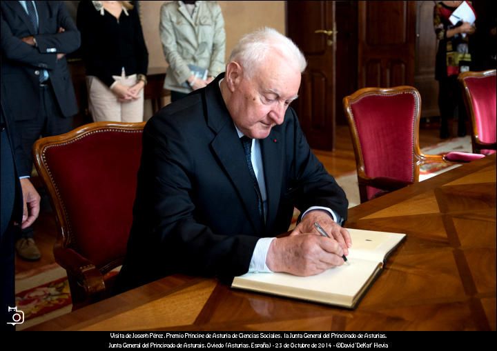Evento: Premios Príncipe de Asturias 2014. Visita a la Junta General del Principado de Asturias de Joseph Pérez, Premio Príncipe de Asturias de las Letras.