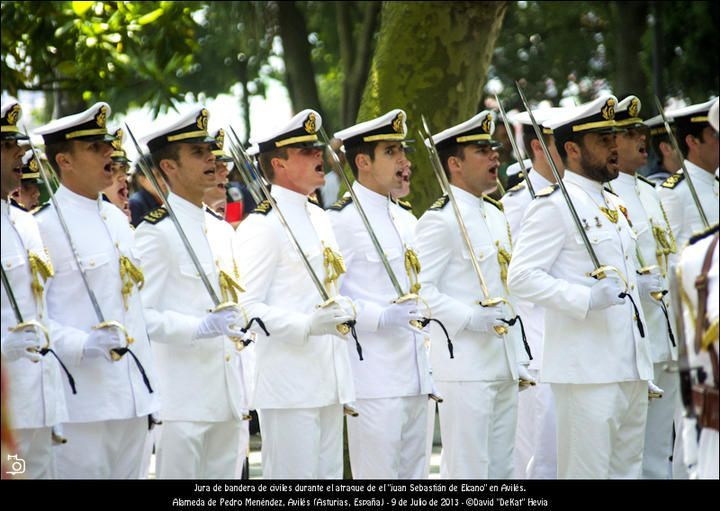 300 avilesinos sellan su fidelidad a la bandera ante el Juan Sebastián del Cano