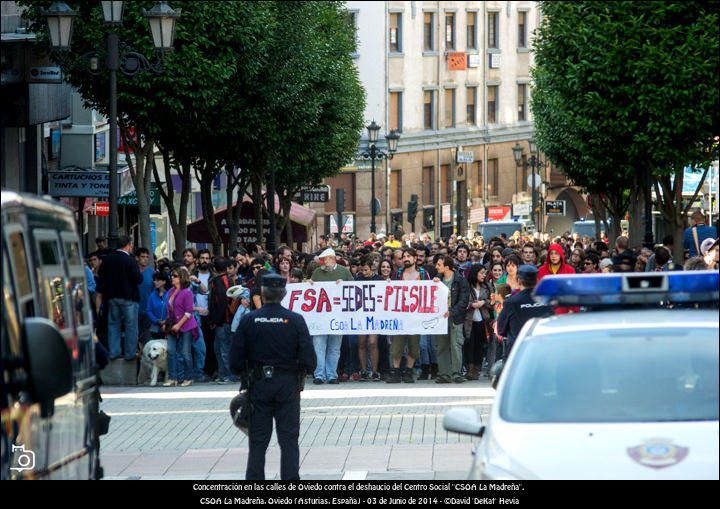 A las 19.00 estaba convocada una concentración en frente del edificio del CSOA La Madreña (Oviedo, Asturias) que había sido desalojado en la mañana del mismo día por la policia, tras dos años de funcionamiento.
