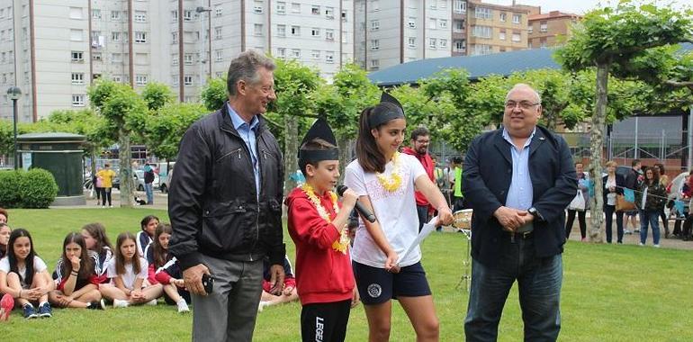 Gijón/Xixón.-El Parque Severo Ochoa de Gijón se convirtió esta mañana en el río Sella en el primer sábado de agosto. Los alumnos del Colegio San Miguel realizaron una recreación del Descenso Internacional del Sella a la que no le faltó detalle: desfile comandado por Los Tritones, lectura del pregón, el "Asturias patria querida" para dar la salida y por supuesto una carrera en piragua, aunque en este caso en seco y a pie.