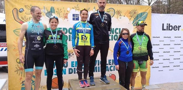 Yéssica Pérez, con una bicicleta prestada y que no era de su talla, tras el problema sufrido con el transporte de las bicis que también afectó a Ana María Gago y Toumi Dahmani, y solventado gracias a la solidaridad de l@s triatletas asturian@s, consiguió la victoria con un tiempo total de 1:10:58 invertido en los 5 kilómetros de carrera a pié por el Campo San Francisco, pulmón verde del centro de Oviedo, y las calles de los alrededores en el corazón de la capital asturiana. Emma Pérez (Diablillos Rivas Mar de Pulpí) entraba segunda poco después, y a algo más de dos minutos completaría el pódium la también castellano-leonesa Esther Gómez (E-Triatlón Valladolid).