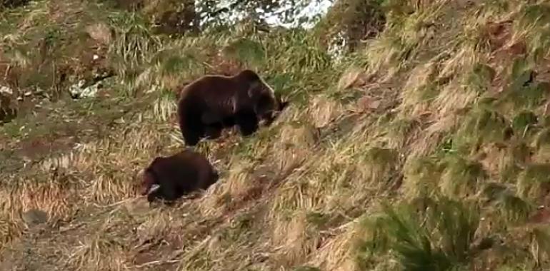Asturias.-La Fundación Oso Pardo (FOP) está comprobando que, tras el periodo de hibernación, los osos se encuentran lustrosos y llenos de energía, como puede apreciarse en las imágenes de estas osas con sus oseznos de segundo año. Es una excelente noticia, pues aunque se está recuperando, la especie sigue estando en peligro de extinción, con unos 300 ejemplares en la Cordillera Cantábrica.La mayoría de los osos pardos de la Cordillera Cantábrica viven dentro de la Red Natura 2000, que es la red de espacios protegidos de la Unión Europea.