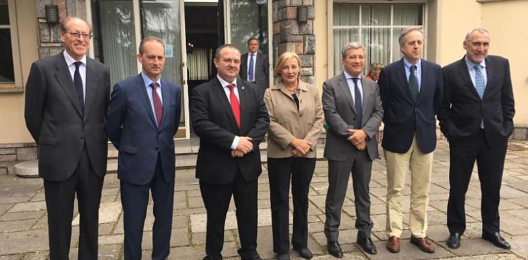 foto : de izquierda a derecha, Rufino Orejas, presidente de IQN; Oswaldo Suárez, CEO del Clúster Asturias; el consejero de de Empleo, Industria y Turismo, Isaac Pola; la alcaldesa en funciones de Avilés, Mariví Monteserín; Antonio Cervera, presidente de Sepides; José Manuel Arias, presidente de Arcelor Mittal España, y el consejero de Infraestructuras, Ordenación del Territorio y Medio Ambiente, Benigno Fernández Fano.
