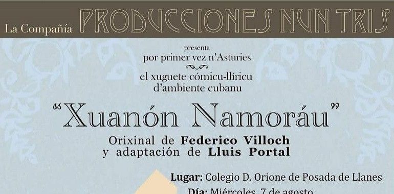 El salón de actos del Colegio Don Orione de Posada acogerá esta tarde, a partir de las 20.00 horas, la representación de la obra Xuanón Namoráu, a cargo de la compañía teatral asturiana Nun Tris. La entrada es libre y gratuita hasta completar el aforo.