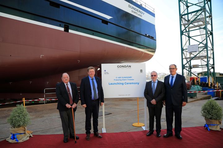 Castropol, Asturias. –En el día de hoy, ha tenido lugar en las instalaciones de GONDAN en Figueras, Castropol, coincidiendo con la pleamar, la botadura de nuestra construcción más reciente: un avanzado arrastrero congelador factoría para Prestfjord AS, uno de los armadores de pesca y piscifactorías más importantes de Noruega.