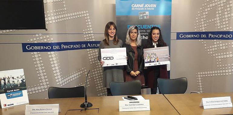 El Carné Joven es un programa que gestiona el Instituto Asturiano de la Juventud, organismo perteneciente a la Consejería de Presidencia. Se trata de una iniciativa que funciona en los 35 países europeos adheridos y que se puede usar en todos esos territorios. Esta tarjeta permite conseguir descuentos de empresas e instituciones colaboradoras en transporte, viajes, alojamiento, visitas a museos, cines, conciertos, academias de estudio y formación, autoescuelas, turismo activo, actividades y equipamiento deportivo, ropa, calzado, salud y estética, etcétera. Para obtener el Carné Joven del Principado hay que tener entre 12 y 30 años y tiene validez hasta los 31. Cuesta 10 euros y tiene incorporado un seguro gratuito de asistencia en viaje.