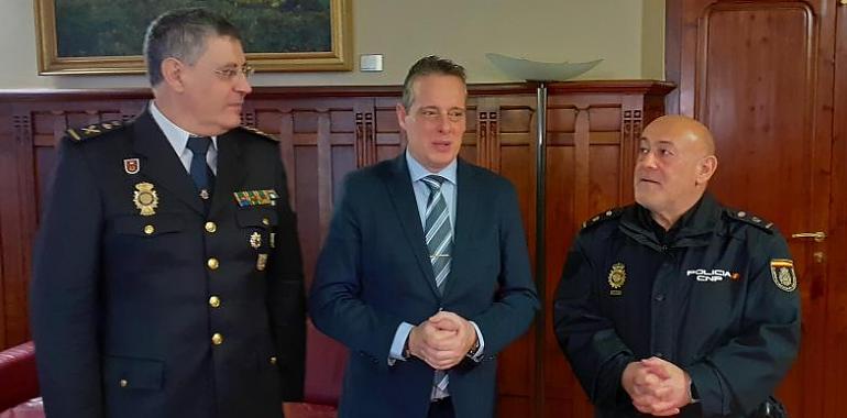 El presidente de la Junta General del Principado, Marcelino Marcos Líndez, ha recibido esta mañana al jefe superior de la Policía Nacional en Asturias. Juan Jesús Herranz Yubero, en una reunión institucional de presentación en el despacho del Presidente, ha explicado cuál es la labor que en la actualidad desarrolla la policía nacional en el Principado.
