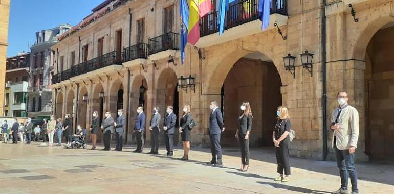 Miembros de la corporación municipal, encabezada por el Alcalde, Alfredo Canteli y representantes de los trabajadores municipales han guardado esta mañana un minuto de silencio, en la plaza de la Constitución, en recuerdo y reconocimiento de todos los fallecidos a causa de la pandemia del COVID-19. “Es un día triste pero era obligado y esperado este recuerdo a los fallecidos y a los que han perdido a un familiar en esta terrible pandemia. También quiero tener un recuerdo para los que han perdido su trabajo. En Oviedo vamos a luchar por el empleo, vamos a ofrecer nuestro apoyo sin fisuras a la hostelería, el comercio y los autónomos a ver si en el menor tiempo posible Oviedo vuelve a renacer”.