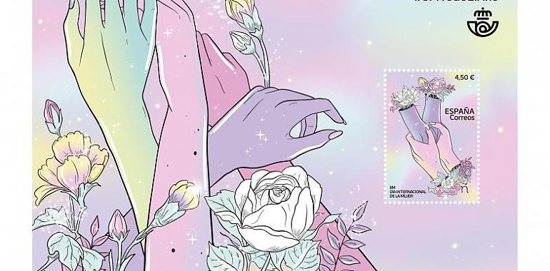 - El sello de presentación de la colección, que se emite hoy, representa la unión de las mujeres a través de dos manos juntas de las que emanan distintas flores