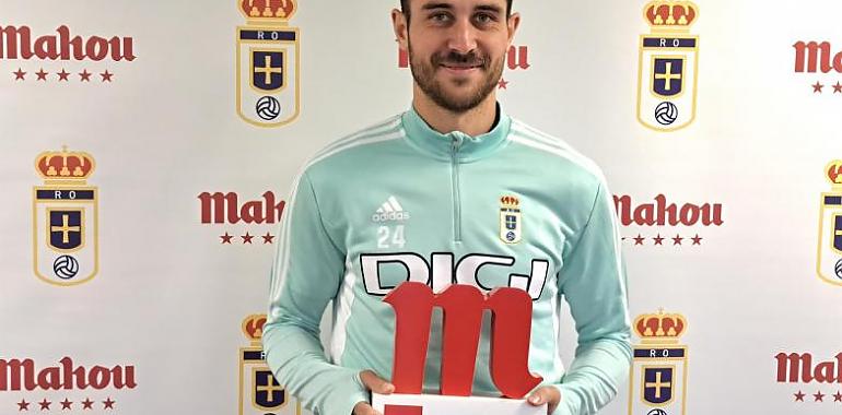 - El ovetense, que se ha ganado el reconocimiento de los seguidores del equipo gracias a su trabajo en el terreno de juego, se ha mostrado feliz al recoger este premio impulsado por Mahou