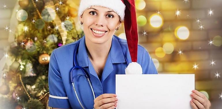 En el Hospital Valle del Nalón, en Nochebuena cenarán crema de nécoras, carrillera de ternera estofada con frutas de invierno, flan de turrón y dulces de Navidad, además de sidra achampanada sin alcohol. El día de Navidad, el menú incorporará revuelto de setas y gambas con crujiente de jamón, lomo de bacalao con alioli de ajo negro, patata panadera, pera Bella Elena y dulces de Navidad.