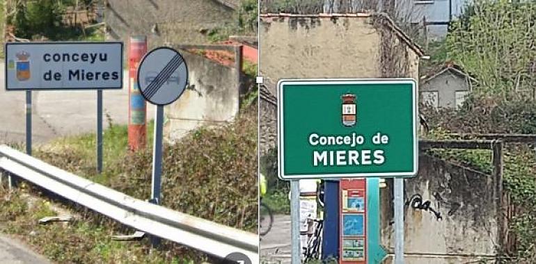Retroceso en la normalización lingüística: Los nuevos carteles solo muestran la toponimia en castellano ("Concejo de Mieres" y "Concejo de Langreo"), obviando la forma oficial en asturiano ("Conceyu de Mieres" y "Afayáivos en Llangréu") e incluso cometiendo errores en la transcripción del topónimo de Langreo.