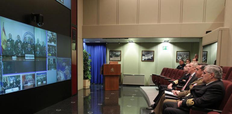 El ministro de Defensa, Pedro Morenés, ha mantenido hoy una videoconferencia con los contingentes españoles desplegados en el exterior, para agradecerles el esfuerzo y dedicación con el que día a día desarrollan su labor, porque hacen a España más grande y más creíble.