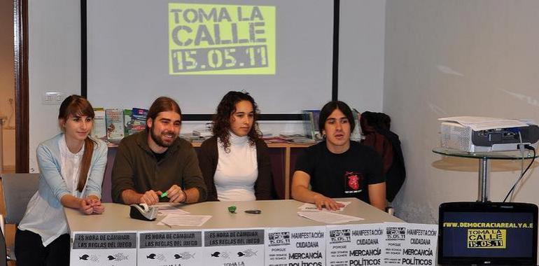 Democracia Real Ya!-Asturies presentó el jueves en la Sala de Prensa del Consejo de la Juventud del Principado de Asturias (CMPA) la manifestación que recorrerá las calles de Uviéu-Oviedo este próximo Domingo, 15 de Mayo, y que partirá de la Plaza de la Escandalera a las 18 horas. Bajo el lema “Toma la Cai. Nun somos mercancía nes manes de políticos y banqueros” pretende reflejar su rechazo a los límites del sistema democrático español.