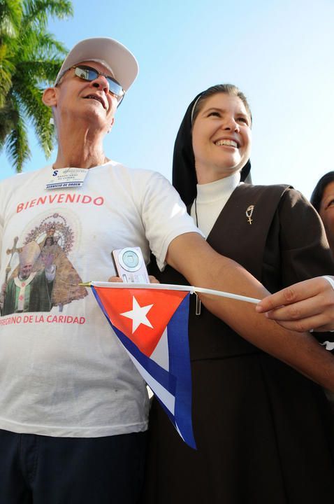 Miembros del clero cubano, como Monseñor Ramón Suárez Porcari canciller de la Arquidiócesis de San Cristobal de La Habana y Monseñor Carlos Manuel de Céspedes, participaron en el recibimiento al igual que autoridades gubernamentales, entre ellas Caridad Diego, encargada de la Oficina de Asuntos Religiosos del Comité Central del Partido Comunista de Cuba.