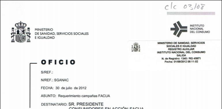 De no hacerlo, le advierte que perdería la condición de asociación de consumidores y usuarios al ser expulsada del Registro Estatal de Asociaciones de Consumidores y Usuarios, dependiente del Instituto Nacional del Consumo (INC), que preside Farjas.