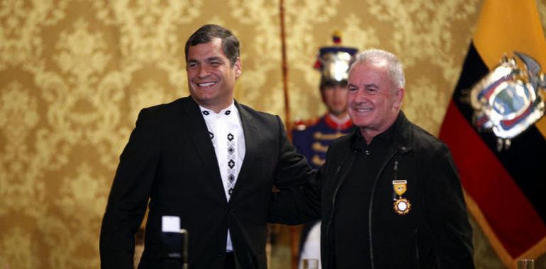 Quito (Pichincha).- En una ceremonia protocolaria que se realizó en el Salón Amarillo del Palacio de Gobierno, el cantautor español “Víctor Manuel” a nombre suyo y de su esposa y también destacada artista “Ana Belén”, agradeció al Presidente Rafael Correa por la entrega de la Condecoración Nacional al Mérito en el Grado de Oficial que juntos recibieron como reconocimiento al aporte entregado para resaltar el arte musical de los países de habla hispana.