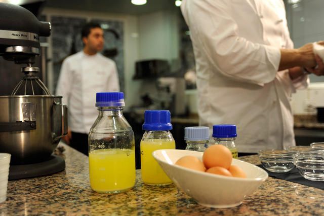 Otra aplicación consiste en poner la espuma en contacto con aceite de oliva, lo que origina una reacción efervescente similar a la espuma de mar. “Esta propiedad también la tiene la espuma producida a partir de la clara de huevo original, pero en un grado mucho menor. Esta vía de trabajo puede resultar interesante para la elaboración de algún plato en el que el propio cliente pueda participar de forma activa, siendo él mismo quien produzca dicha reacción”, destaca Sandoval.