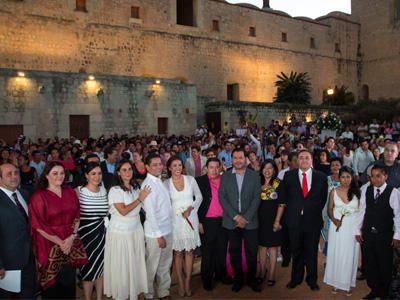 La marcha nupcial interpretada por la Banda de Música de la Secretaría de Seguridad Pública anunciaba que las parejas habían quedado nombradas como marido y mujer.