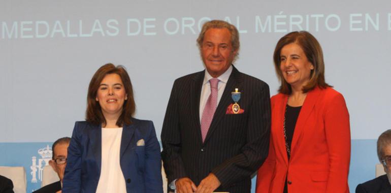 Madrid.-Dos asturianos, el eterno galán, el gijonés Arturo Fernández, oriundo de Cimavilla, y el economista Velarde Fuertes, recibieron hoy sendas medallas de Oro al Trabajo de la manos de la ministra de Empleo Fátima Báñez.
