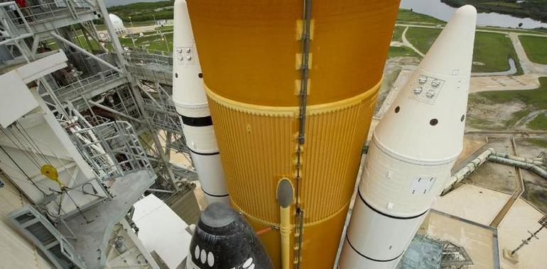 El transbordador espacial Atlantis aguarda en plataforma de lanzamiento 39A en el Centro Espacial Kennedy, en Cabo Cañaveral, Florida. El Atlantis, en su última misión, tiene previsto el despegue hacia la Estación Espacial Internacional, con misión de avituallamiento, este Viernes, 08 de julio, en el último vuelo del programa de transbordadores.