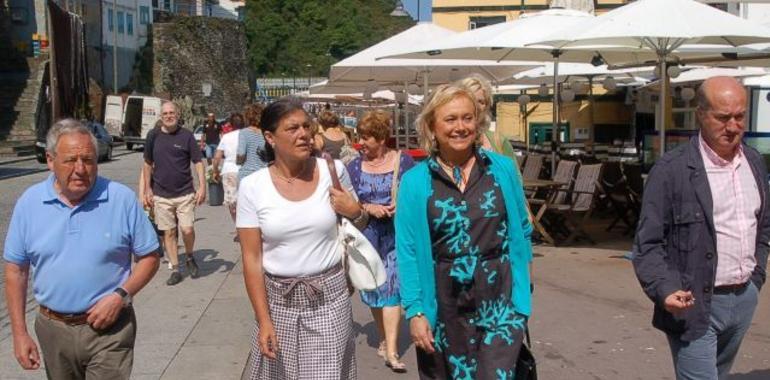 La presidenta popular aprovechó para invitar al secretario general del PSOE a nivel nacional, Alfredo Pérez Rubalcaba -de vacaciones en el Oriente asturiano-, a ir a Cudillero "y pasear, prestar oído a todo lo que dicen los vecinos y aplicarse el cuento, para que su partido ofrezca una solución respetuosa y democrática, ya que parece que, además de a veranear, viene a hacer política a Asturias".