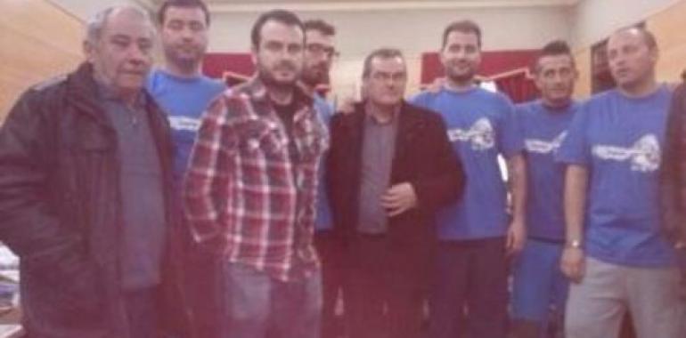 El portavoz en el Parlamento, miembros de la dirección y el coordinador de IU en Langreo visitaron hoy a los trabajadores encerrados en el Ayuntamiento