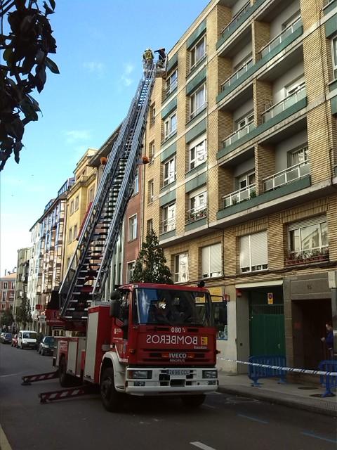 Oviedo.-Efectivos del servicio municipal de bomberos trabajaban a mediodía del miércoles en un edificio de la Calle González Besada, el número 5, revisando la estabilidad de las cornisas y otros elementos de fachada en una actuación de urgencia tras la caída de varios elementos, uno o varios de los cuales han herido a una mujer que se encontraba en la acera en ese momento. Una joven de 24 años, I.V.G.,
