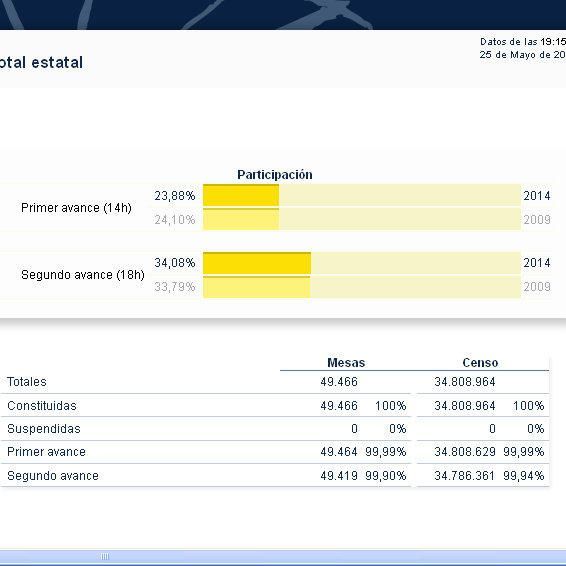 El dato es más de dos puntos inferior al registrado a la misma hora en las anteriores elecciones europeas, en el año 2009, cuando se contabilizó un 35,06%.