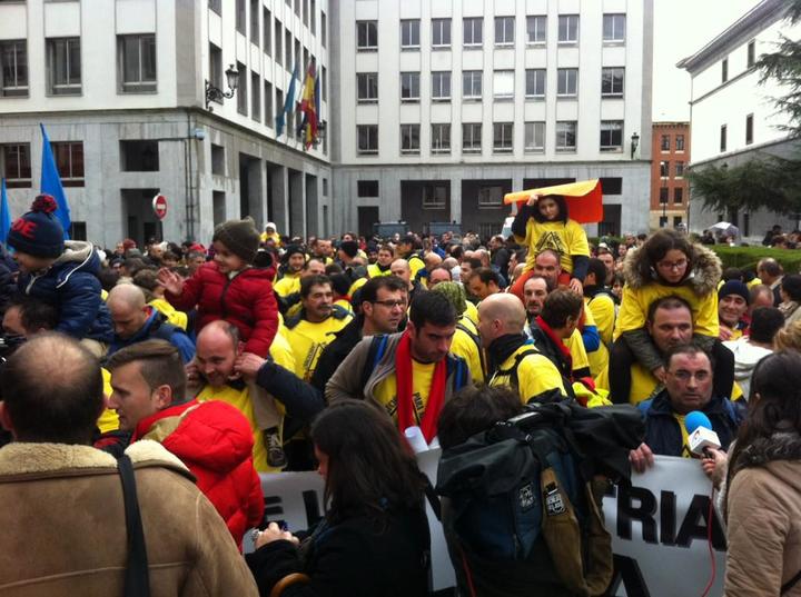 Oviedo.-Dentro del calendario de movilizaciones, los trabajadores de Alcoa Asturias protagonizaron este lunes una marcha a pie desde la fábrica en San Balandrán, por la carretera vieja entre Avilés y Oviedo. Poco después de las cuatro de la tarde llegaron a la Plaza de España, abarrotada de cientos de personas que esperaban a los integrantes de la marcha y con quienes se concentraron antes de que el Comité de Empresa y los representantes de las federaciones de CCOO de Industria y MCA UGT fueran recibidos por el delegado del gobierno en Asturias Gabino de Lorenzo.