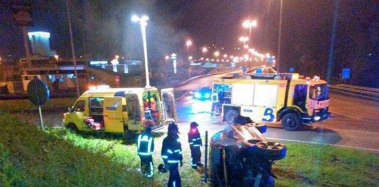 Un hombre ha resultado herido tras salirse de la vía y volcar con el vehículo que conducía en la rotonda de acceso a la AS-I, en el polígono de Riaño, en las inmediaciones de una gasolinera, en Langreo.