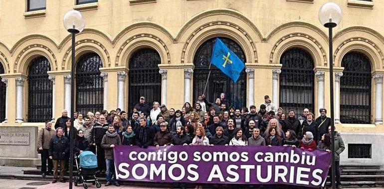 La candidatura al Consejo Ciudadano de Podemos Asturies se reúne ante la sede del Gobierno asturiano en la víspera del inicio de las votaciones de primarias