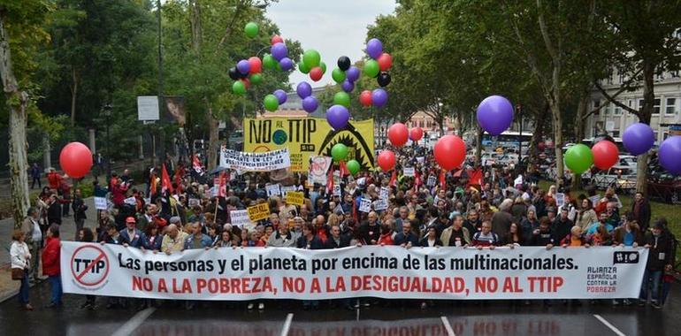 Las movilizaciones han sido convocadas por la Campaña No al TTIP y la Alianza Española contra la Pobreza, que han confluido precisamente para denunciar como los tratados de libre comercio y las políticas internacionales han aumentado la brecha entre la población rica y la población pobre. “Esta semana el informe de riqueza global de Credit Suisse ha oficializado que el 1% del planeta posee tanto como el 99% restante y es precisamente esa pequeña elite la que está presionando para que se firmen tratados como el TTIP” señalan los convocantes, que han denunciado cómo esta acumulación se produce a costa de los derechos de la mayoría de las personas y de la degradación del planeta.