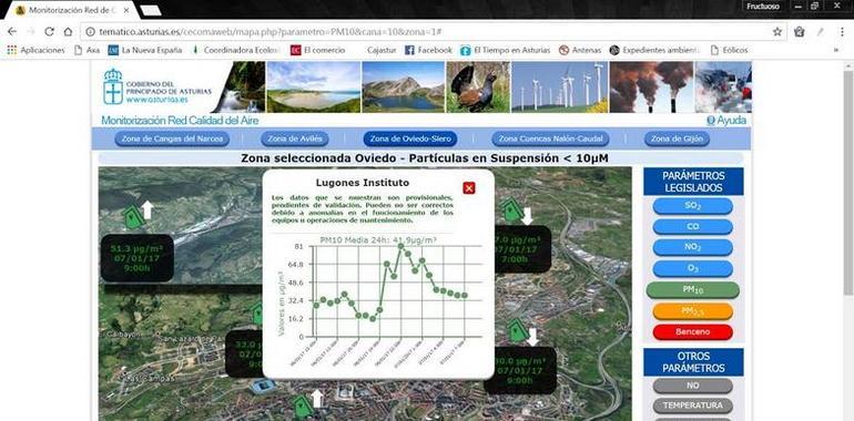 Según informa la Coordinadora Ecoloxista, después del viento del jueves tarde y el viernes mañana que alivio la situación de contaminación de toda Asturias, vuelve a dispararse la contaminación en la zona central destacando Siero, mientras el Principado solo riega las calles de Lugones, medida claramente insuficiente, después de 2 semanas de contaminación disparada. De acuerdo a los datos que facilita el Gobierno de Asturias en su web hoy mismo, con la obligación de comunicación diaria de contaminación atmosférica y calidad del aire de la Directiva 2008/50/CE y el R.D 102/2011.