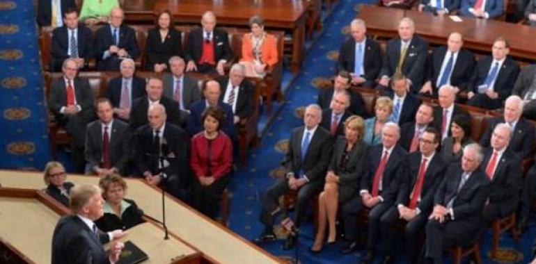 (Andes).- El presidente de Estados Unidos, Donald Trump, volvió a repetir este martes varias de sus promesas electorales en su primer discurso ante el Congreso, en el que anunció que pronto iniciará la construcción del muro con México, declaró fuerte apoyo a la OTAN y pidió la aprobación de un elevado prepuesto militar en casi un 10%, unos 54 mil millones de dólares.