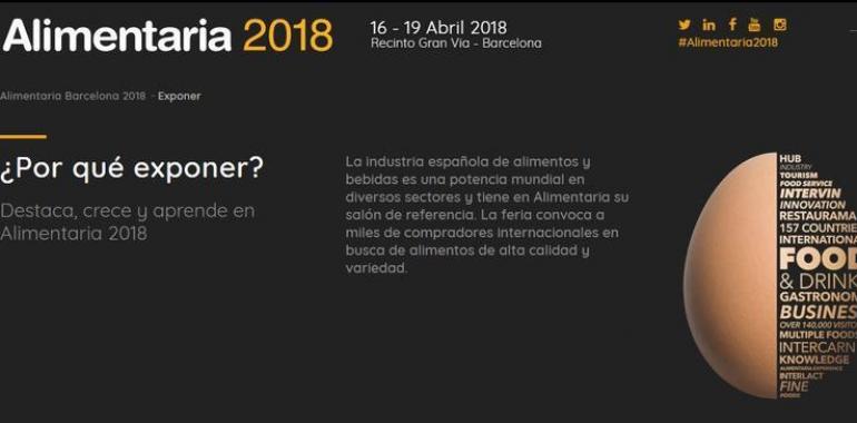 Con el apoyo de la Sociedad de Promoción Exterior Principado de Asturias S.A. (ASTUREX) seis empresas asturianas mostrarán sus mejores productos en Alimentaria Barcelona, la feria internacional más importante del sector agroalimentario en España, que reunirá a más de 4000 empresas de 70 países del 16 al 19 de abril, en el recinto ferial Gran Vía de Fira Barcelona.